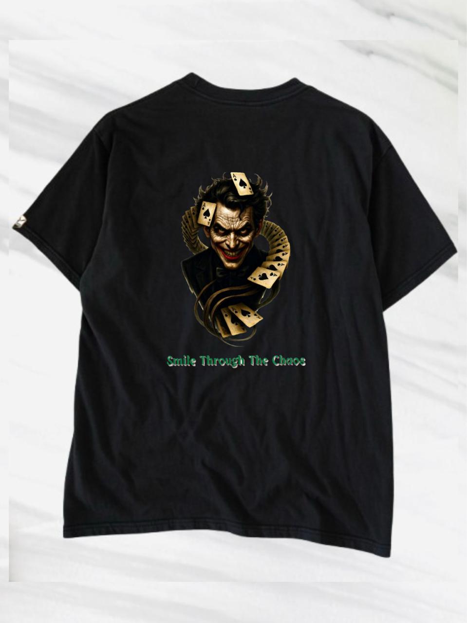 This artwork brings pure chaos energy — razor-sharp grin, swirling ace cards, and a dark aura that commands attention..